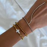 - 18 karat gold or silver plated - Made to last and tarnish free - Lead-free, Nickel-free & Cadmium free - Waterproof & sweatproof - Length: 6" + 1" extender
