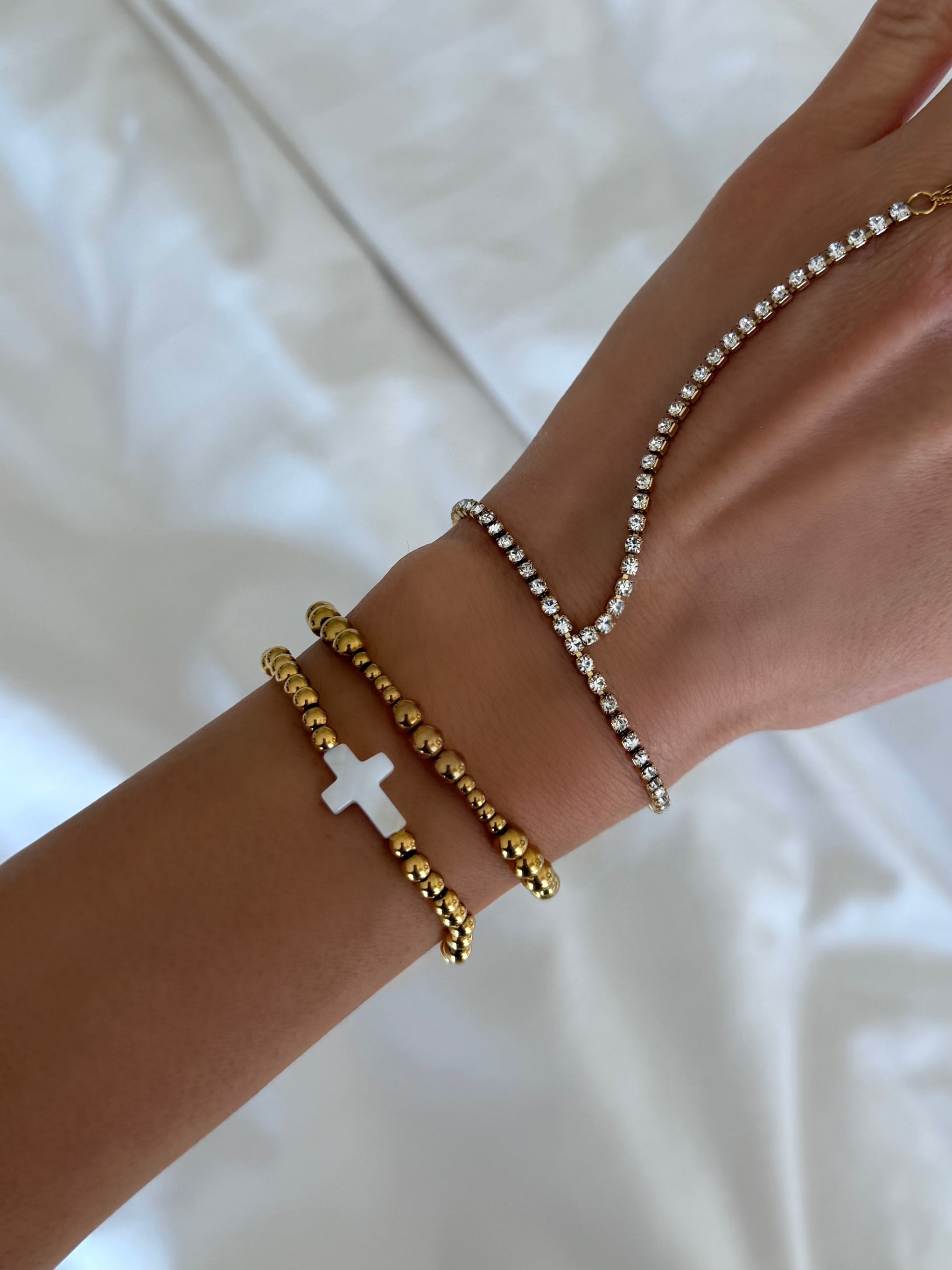 The Little Blessings Beaded Bracelet pairs dainty beads with a soft, polished cross charm for the sweetest touch of meaning. Lightweight, stretchy, and easy to stack, it brings a gentle, feel-good sparkle to your evryday look. A simple reminder of the little blessings you carry with you.