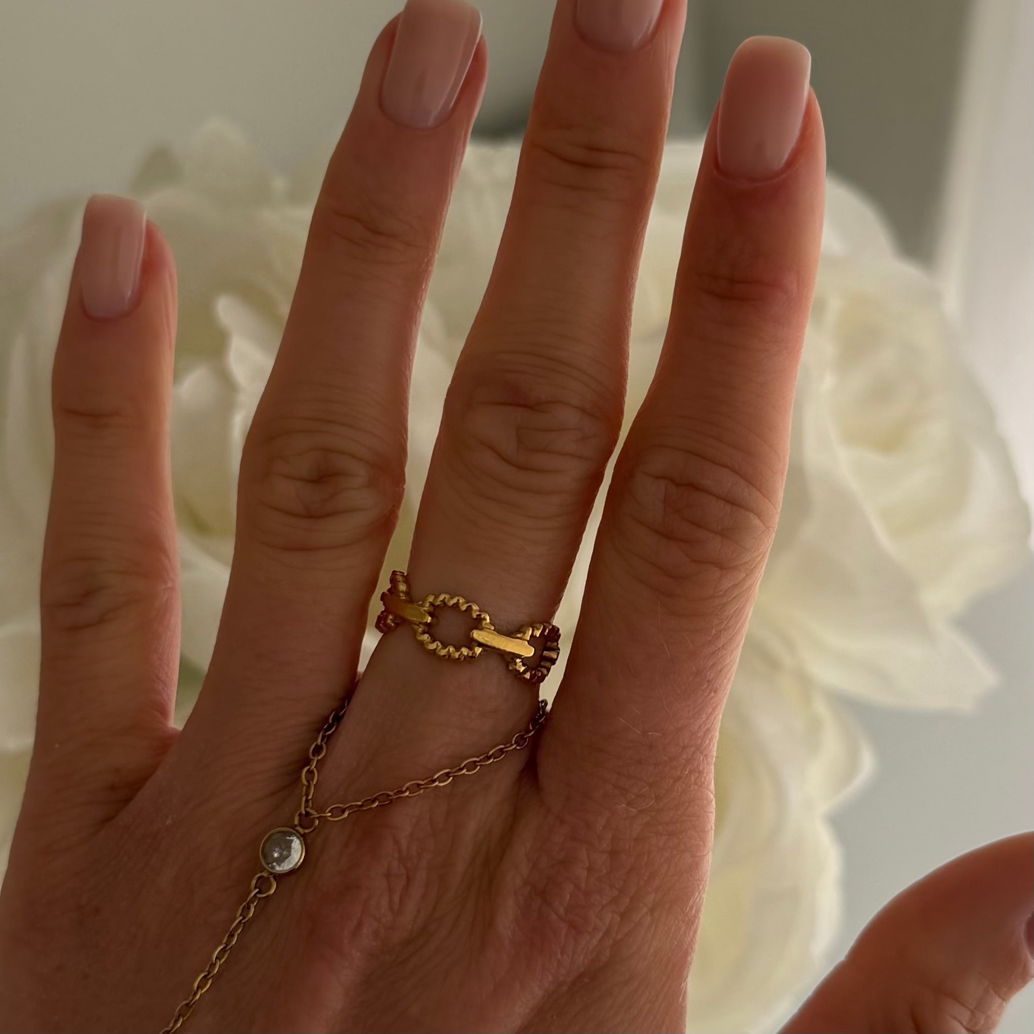 Shine brighter than ever with our Dream Daze Ring, crafted with a bold linked design that sparkles from every angle. This statement piece is perfect for stacking or rocking solo, giving your look that effortlessly cool, dreamy touch to any outfit.
