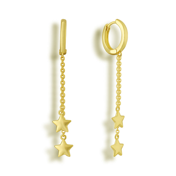 - Huggie-Ohrringe mit baumelnder Kabelkette und Sternen