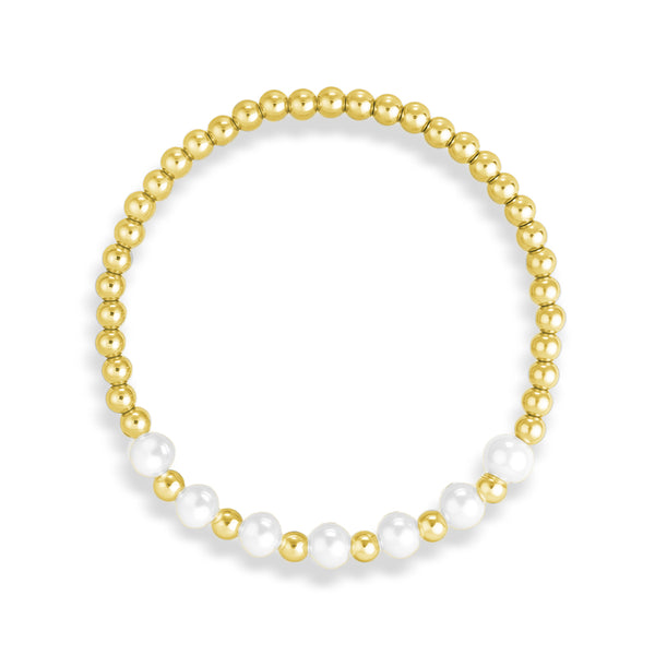 - Bracelet élastique avec billes dorées / argentées et billes blanches